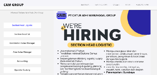 capture tampilan lowongan kerja di website group caturadhimanunggal.com